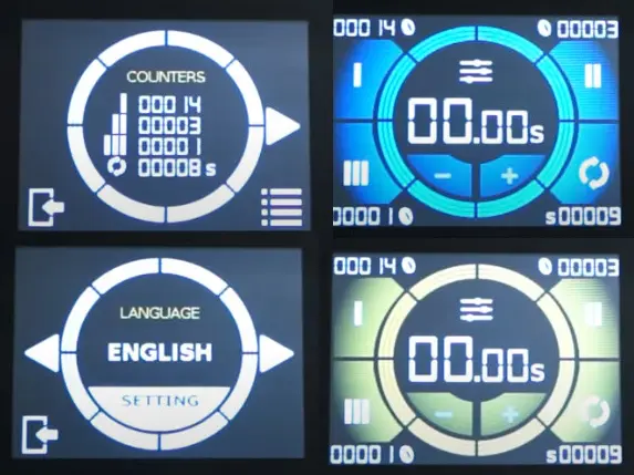 Màn hình chính là một điểm nhấn của máy xay cafe Eureka Helios 80. Màn hình rất nhanh, lướt mượt và trực quan với 4 màu sắc chủ đạo, có thể thay đổi mang đến cho bạn cảm hứng và sự tươi mới. Có 3 chương trình xay, mỗi chương trình đều có thể điều chỉnh thời gian với số gia (chênh lệch nhỏ nhất giữa các lần chọn) là 0.05 giây. Như vậy, máy có thể xay cà phê trong khoảng thời gian rất chính xác. Bạn cũng có thể lựa chọn về ngôn ngữ, bộ đếm số lượng dose đã xay, độ sáng màn hình. Việc kích hoạt hoặc tắt chức năng cài đặt cho mỗi lần xay cũng rất dễ dàng. Ngoài ra, màn hình sẽ hiển thị thông báo bảo trì dao xay hay khôi phục lại cài đặt gốc cho máy.