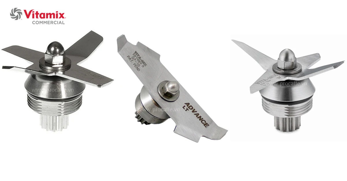 Đi chung với cối, do đó dao của 2-speed cũng là loại thường 4 mặt. Trong khi đó, máy xay Vitamix Drink Machine Advance và The Quiet One đều dùng dao xay Advance chuyên dụng cắt đá. Đặc điểm của loại dao này là chỉ có 2 cạnh được thiết kế to bản, cắt đá nhanh và mạnh hơn.