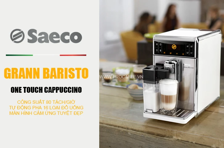 Gran Baristo -chiếc máy pha cà phê tự động tân tiến nhất của Saeco với màn hình cảm ứng tuyệt đẹp, tự động pha chế 16 loại thức uống khác nhau như espresso, cappuccino, latte, americano, regular coffee…… với công suất lên đến 80 tách/giờ. Thay đồi khay hạt bất kỳ lúc nào khi bạn muốn thưởng thức hương vị cà phê khác nhau - điều chỉ duy nhất chiếc máy này có. Hiệu suất được đẩy lên tối đa nhờ công nghệ gia nhiệt nhanh chóng, cá nhân hóa quy trình pha chế và còn quá nhiều ưu điểm, mời bạn xem rõ hơn trong video